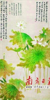 此次拍賣的張大千《高潔圖》是1948年張大千所繪的兩件重要的“荷花圖”之一,其中一件曾委托何香凝贈(zèng)送毛澤東,現(xiàn)藏于中南海毛澤東故居。另一件即為此作,尺寸比前者更大,也是拍場(chǎng)上少見的張大千巨制。