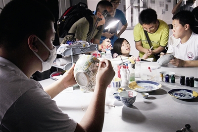 現(xiàn)場修復間與外面的文物展示區(qū)僅隔一道玻璃,觀眾在展示區(qū)參觀圓明園出土瓷片和老照片時,也可以近距離觀看文物修復過程。