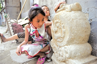 昨天下午,記者來到海淀區(qū)青龍橋街道騷子營社區(qū),石門墩就擺在李玉財(cái)家門外。石門墩高約50厘米、寬70厘米左右、厚度約20厘米,由整塊的石材雕刻而成,抱鼓上雕刻有精致的花紋。李玉財(cái)說,如果這個(gè)石門墩真是文物,他會立刻上交,“文物是國家的,要交給政府,好好保護(hù)起來”。