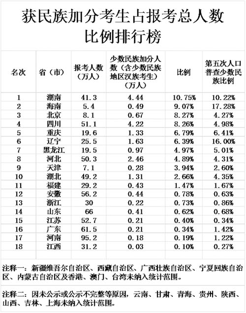 這441人中,體育加分64人,包括華僑歸僑子女、臺(tái)灣省籍考生、奧賽獲獎(jiǎng)?wù)、自謀職業(yè)退伍士兵、烈士子女等項(xiàng)目在內(nèi)一共才74人,少數(shù)民族獲加分的共 303人。