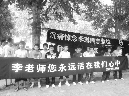 昨天上午,倒在給學(xué)生送通知書途中的太康縣回族中學(xué)校長李琳的追悼會在太康縣殯儀館舉行。近千名來自社會各界的群眾、太康縣教育系統(tǒng)的師生紛紛趕到這里,為英年早逝的好校長李琳送上最后一程。