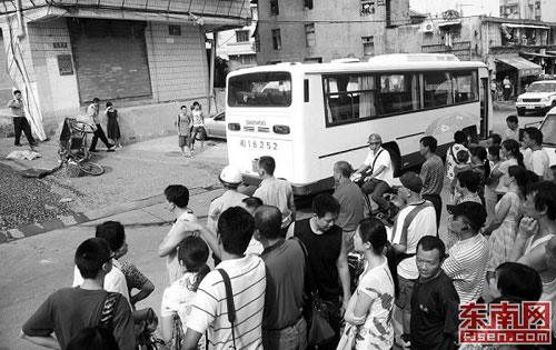 住在路邊四樓的周小姐目睹了車禍發(fā)生的經(jīng)過。她告訴記者:“當(dāng)時我正站在陽臺邊梳頭,大約7:50的時候,一輛大客車從西邊開過來,車速不是很快。開到我樓下時,我看到車撞到了一個小女孩和一個老人,然后車子又繼續(xù)往下開,緊接著撞到一前一后兩名婦女,又撞到一名騎著三輪車的男子,最后左轉(zhuǎn)彎停下了!