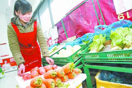 畢業(yè)前,別的同學(xué)都忙著四處找工作,她和班里3名男生商量著自主創(chuàng)業(yè),起初打算開家品牌服裝店,可加盟費(fèi)就要兩萬多元,廠家還有多種限制。后來,他們決定在居民區(qū)開蔬菜鮮肉店,成本小,風(fēng)險也小。畢業(yè)一個月后,姜茵等人在馬李莊開了第一家店,本錢是由家里籌借的,還有貸款。