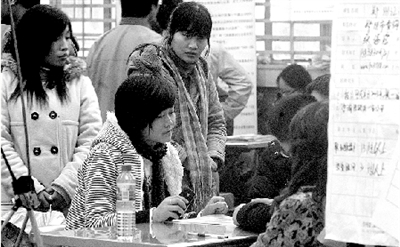 目前正是畢業(yè)生找工作的黃金時期,我省高校招聘活動也漸入高潮,昨日,在鄭州輕工業(yè)學院舉行的畢業(yè)生供需見面會現(xiàn)場,冷風和小雨難敵畢業(yè)生找工作的熱情。據(jù)不完全統(tǒng)計,當天共有來自省內(nèi)外382家企事業(yè)單位提供了6900余個就業(yè)崗位。