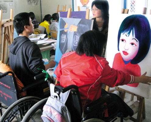 現(xiàn)在靠文化課上本科,對這屆畢業(yè)生來看,我覺得很難。不過,從去年開始,我們有意識地動員高三學生突擊學畫畫,畢竟藝術(shù)考生文化成績不高,而且對殘疾人來講,學畫畫也是一個不錯的出路。著名畫家周春芽還專門輔導了我們這些學生。這次有30多名畢業(yè)生參加了藝術(shù)類統(tǒng)考,成績不錯,估計有10多人可以上本科院校。