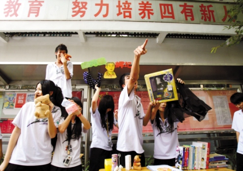汶川大地震一周年之際,廣州市美術(shù)中學(xué)高一、高二級學(xué)生擺開“愛心集市”,記者到場一個(gè)小時(shí),就有800件學(xué)生原創(chuàng)作品和工藝品成功交易并成為愛心捐款。集市除了批發(fā)時(shí)尚飾品、小用具、毛公仔外,學(xué)生原創(chuàng)作品也搬上義賣貨架,F(xiàn)場為“顧客”畫像、硬紙板折成細(xì)致繪圖的“首飾香盒”、自行設(shè)計(jì)編織中國結(jié)、炭筆素描和漫畫紙片,紛紛成了搶手貨。