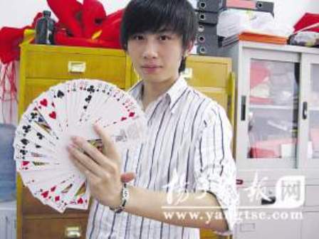 揚州大學(xué)物理學(xué)院物理教育應(yīng)屆畢業(yè)生王杰長相酷似劉謙,特別喜歡魔術(shù),在東南衛(wèi)視與劉謙同場錄制節(jié)目時被誤認為是“雙胞胎”。小王先后10次被邀請到省級電視臺做客,前不久還喜獲江蘇省魔術(shù)大賽大學(xué)生組冠軍。他表演魔術(shù)15分鐘收入千元,最近半年進賬萬余元。師范專業(yè)的小王目前已如愿以償?shù)嘏c大連一家魔術(shù)團簽約,即將成為一名專業(yè)魔術(shù)師。