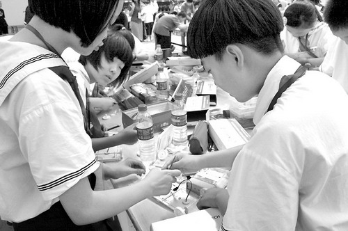 在江蘇啟東賽場(chǎng)上,有一件事令評(píng)委老師非常感動(dòng)。在進(jìn)行小車組裝及外觀設(shè)計(jì)比賽時(shí),一名女學(xué)生創(chuàng)意出了一輛“愛心一號(hào)”小車,在這輛拼裝小車上,裝上了五顏六色的用“愛心”圖形拼成的小車外形,心形的設(shè)計(jì)上寫著“少年創(chuàng)意汶川振興”八個(gè)字。她解釋說:“‘愛心一號(hào)’裝載了全國人民的祝福,希望能把它們送給災(zāi)區(qū)的孩子們!边@輛“愛心一號(hào)”最終脫穎而出,被評(píng)為“十佳創(chuàng)意車”之一。