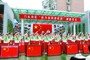本報(bào)訊(通訊員李劍韜)昨天上午,門頭溝區(qū)大峪二小舉行了“我為祖國繡國旗”獻(xiàn)旗儀式。41面由全區(qū)3萬余名學(xué)生、教師一針一線精心繡制的五星紅旗獻(xiàn)給祖國。“我為祖國繡國旗”活動(dòng)歷時(shí)97天,3萬多名學(xué)生、教師和家長積極參與了國旗的繡制。41面國旗,共計(jì)1300萬針,用線總長達(dá)15萬米。這根15萬米長的紅線,足以把北京的最高峰靈山和祖國的心臟天安門緊緊聯(lián)在一起。
