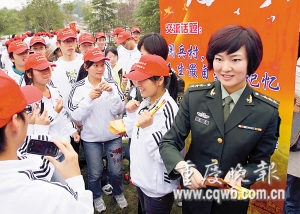 為讓學(xué)子們感受當(dāng)兵的光榮,市征兵辦還請(qǐng)來(lái)三位“形象大使”現(xiàn)場(chǎng)宣傳。她們是三醫(yī)大的唐甜和楊菁,以及重慶警備區(qū)女戰(zhàn)士唐勇。唐甜和楊菁是國(guó)慶閱兵式上女兵方陣的一員,她們?cè)陂啽缴系娘S爽英姿讓人記憶猶新。而18歲的唐勇雖去年才入伍,但已榮立二等功。