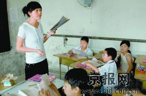 “在這個(gè)很簡(jiǎn)陋但整齊的教室里坐著50多個(gè)小學(xué)生,生于1986年的姚老師已經(jīng)在這里任教兩年。她帶兩個(gè)班,同時(shí)是一個(gè)班的班主任。每月工資雖然只有800元左右,每天工作十幾個(gè)小時(shí),但她沒覺得苦!