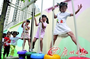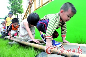 記者在現(xiàn)場見到,與其他幼兒園不同的是,剛開辦的禪城區(qū)天湖酈都幼兒園1700平方米的戶外活動場地上,布滿了“梅花樁”、“吊臂橫桿”、“高空爬網(wǎng)”、“水泥管”、“迷宮”、“碎石路”等各種各樣的設施,儼然一個小型“戶外軍事拓展基地”。