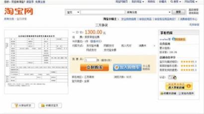 昨日,記者在淘寶網(wǎng)試著搜索“三方協(xié)議”這一關(guān)鍵詞,發(fā)現(xiàn)確有賣(mài)家,而且數(shù)量不少。這些賣(mài)家大部分標(biāo)價(jià)400元,最低也有300多元,這些合同大多標(biāo)明了一些江蘇地區(qū)高校,其中一份北京地區(qū)的三方協(xié)議則開(kāi)價(jià)高達(dá)1300元。交易記錄顯示,400元和1300元的協(xié)議近日均有買(mǎi)家。