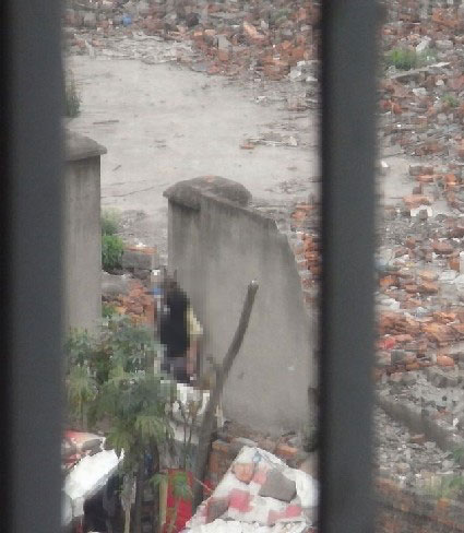 發(fā)帖者說,“成都某大學(xué)的一對(duì)情侶就這樣饑渴難耐啊,在學(xué)校附近一被拆遷的房子一堵墻下偷歡,沒有一片瓦為他們遮擋,太可悲了!