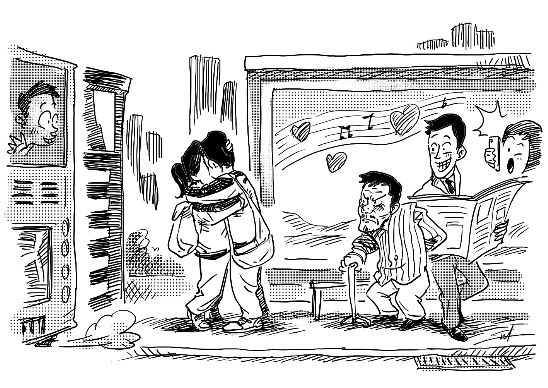 經(jīng)常在這里等車的人都見過這對學(xué)生戀人。初三女學(xué)生小張有點害羞地說:“愛情很美好,戀愛也正常,我們隔壁班有七八對這樣的戀人,老師也都知道。其中一對學(xué)習(xí)都很好,成績在班上都能排進(jìn)前十名!