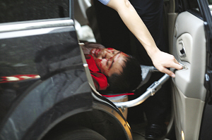 在此情況下,指揮人員決定讓特警采取強(qiáng)攻。于是,由一名便衣人員上前吸引嫌疑人注意力,以讓其打電話為名,引其抬頭,而持槍待攻的特警趁此機(jī)會(huì)沖進(jìn)屋內(nèi),直逼歹徒面前,果斷向其開槍,將其面部擊傷,歹徒頓時(shí)血流滿面。這突如其來的襲擊,讓歹徒受了不小的驚嚇,加上天氣炎熱,歹徒本來體力消耗就比較大,其頓時(shí)出現(xiàn)了虛脫,立馬癱在地上動(dòng)彈不得。歹徒經(jīng)過簡單包扎傷情很快就穩(wěn)定了下來,被警方帶走。