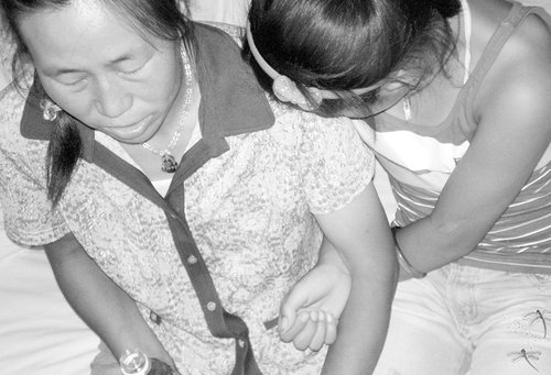 ●女童小月(化名)雙手緊緊抓住母親和姐姐的胳膊,腳步匆忙地閃進(jìn)記者的房間。隨著“咔嗒”的關(guān)門(mén)聲,她驚恐地抬起頭,死盯著門(mén)閂看了三五秒鐘,直到母親伏在耳邊說(shuō)“門(mén)已經(jīng)上鎖了”,才肯坐在床沿,將身體埋在母親懷里。