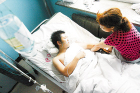 “我們什么情況都不知道,接到學(xué)校通知時(shí),孩子已經(jīng)被送到醫(yī)院了!”趙醒的母親不斷地給兒子揉手,“學(xué)校只告訴家長(zhǎng),孩子出事了,別的也沒說(shuō)什么!薄昂⒆邮潜焕渍鹇榱!”趙醒的奶奶說(shuō)。