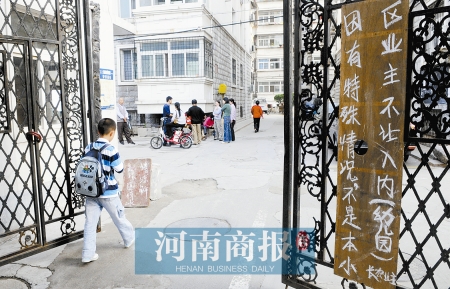 9月15日上午7時許,鄭州市伊河路與桐柏路交叉口附近的長宏花園小區(qū)門口多了個牌子:因有特殊原因,不是本小區(qū)業(yè)主不讓入內(nèi)(幼兒園)。落款為長宏業(yè)主。同時,小區(qū)業(yè)主也當起“門神”,守著小區(qū)大門,不讓學生進入小區(qū)內(nèi)長宏幼兒園上課。