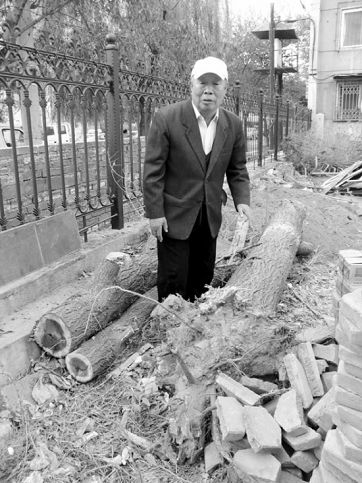 現(xiàn)場(chǎng):被伐大樹幼兒園內(nèi)被“肢解”