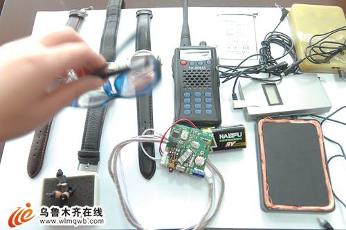 1月14日,在自治區(qū)無線電管理辦公室里,記者見到了收繳的各種無線電作弊工具,有手表、眼鏡、項圈,也有比指甲蓋還小的接收裝置。據(jù)介紹,在1月10日-11日的考試中,烏市共監(jiān)測到可疑信號12個,查處5個發(fā)射作弊信號源,對其余信號運用相關(guān)技術(shù)手段進行壓制阻斷。查處涉案筆記本電腦2個,5個無線電發(fā)射設(shè)備,4套無線電接收設(shè)備,涉案人員共11人。