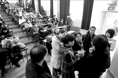 與往年一樣,今年中傳大仍推行網上報名,藝術類專業(yè)全部實行網上報名、網上交費、網上約考。由于很多考生反映未報上名,學校特意在2月7日安排人員為考生現(xiàn)場補報,但部分考生仍未能趕上這次補報。為給考生考試機會,昨天上午,學校在教務處臨時設置了一個報名點,方便學生補報。