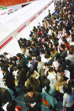 今天上午,首都師范大學(xué)體育館召開2009年中小學(xué)教師專場招聘會,1000個教師崗位面向應(yīng)屆畢業(yè)生現(xiàn)場招聘。招聘信息引來眾多應(yīng)聘者,盡管工作人員將每排人數(shù)調(diào)整為6至10人,進(jìn)場隊伍仍然排出七八百米長。