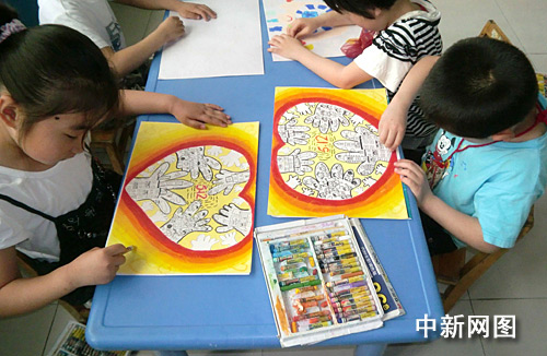 中新網(wǎng)杭州5月12日電 (記者龔讀法 實(shí)習(xí)生金斌) 距2008年“5.12”汶川大地震已有一年的時(shí)間。災(zāi)區(qū)的小朋友們:你們還好嗎?是不是也和我們一樣,在寬敞明亮的教室里讀書?是不是也和我們一樣,在操場(chǎng)上追逐嬉戲?我們想問(wèn)的太多太多……2009年5月12日,杭州市下沙城區(qū)的孩子們用五彩的蠟筆,懷著對(duì)未來(lái)最美好的憧憬,描繪著他們心中的新汶川。