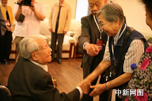 當(dāng)年的老師、102歲高齡的著名經(jīng)濟(jì)學(xué)家楊敬年,依然精神矍鑠。在接過白發(fā)蒼蒼的同學(xué)們獻(xiàn)上的鮮花后,楊敬年風(fēng)趣地對(duì)大家說:“和我相比,你們還都是年輕人,我羨慕大家;我的長(zhǎng)壽秘訣就是經(jīng)常用腦,希望大家能每天讀一兩首詩、寫兩三段文章,用這種方式度過晚年,你們就會(huì)忘記年齡!”