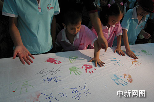 中新網(wǎng)武漢7月13日電 (段娟娟 艾啟平)13日下午,“關(guān)愛心靈、健康成長(zhǎng)”——關(guān)懷受艾滋病影響少年兒童第二屆夏令營在武漢舉行開營儀式。開營式上,小營員們舉行了“心連心”結(jié)對(duì)互助留簽名手印活動(dòng),并得到了贈(zèng)送的書包。