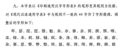 按照這份《通用規(guī)范漢字表》,“琴”“親”“魅”等44個漢字在專家倡導下進行了寫法調(diào)整。