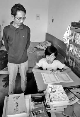 早上7點起床,晚上6點結(jié)束,父親給她排的課程表滿滿的。有日語拼讀、英語聽力、口語、中文作文寫作、普通話朗誦、數(shù)學、科學等。