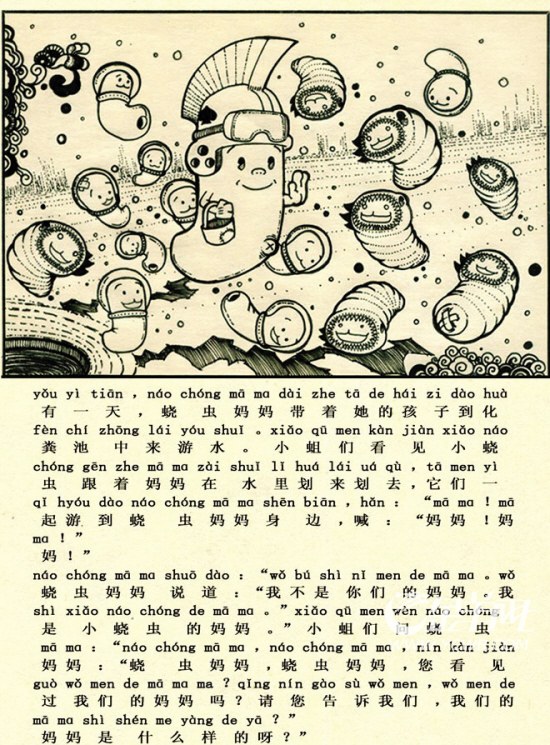 《小蛆蟲找媽媽》的廣泛傳播,除了引發(fā)對教材改革的爭辯,還讓很多網友發(fā)出“人生的感嘆”。網友“大雄”認為:“《小蛆蟲找媽媽》不無深度———好人要活,壞人也要活;富人要活,窮人也要活;努力工作的人要生活,好吃懶做的人也要生活。這好比我們喜歡的可愛蝌蚪要生活,而讓人一聽就吃不下飯的蒼蠅也得生活。人們看問題往往帶上感情色彩,以情感判斷和價值取向來判斷事物。但我們有必要讓孩子知道,世界上的事物不是一切都是美好的,只有從多角度對孩子進行教化,才讓他們更接近于現(xiàn)實。”