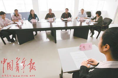 早上8點(diǎn)半,一百多名考官已經(jīng)在考場三樓的階梯教室等待抽簽。此時(shí)的一樓,1000多名考生已經(jīng)排隊(duì)簽名進(jìn)場候考。每個(gè)人面試的時(shí)間都是12分鐘,由于面試成績在總成績中占40%,因此,這12分鐘將在很大程度上決定面試者的未來。