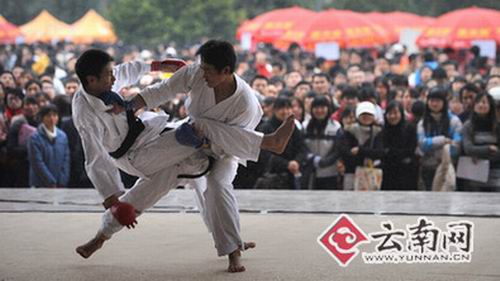 手握一根1.5米的木棍,身著藍色訓練服的李萍表演起了“棍術”。這不是普通的武術表演,而是在云南省師范類畢業(yè)生專場招聘會上,大學生推銷自己的別樣方式。