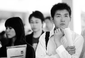 昨日的招聘會(huì)是金融營(yíng)銷類專場(chǎng),以往備受學(xué)生追捧的“金飯碗”昨日卻令不少求職者感到“當(dāng)頭一棒”。“早上8點(diǎn)我就過(guò)來(lái)了,已經(jīng)投了4家,但都不是很滿意,銀行招聘的好像只有興業(yè)銀行一家!痹谡衅笗(huì)現(xiàn)場(chǎng),記者遇到廣東金融學(xué)院金融專業(yè)大四學(xué)生小玉,他說(shuō)自己的愿望就是到銀行工作,但因?yàn)榻鹑谖C(jī)的影響,銀行招聘正在“壓縮”,不僅崗位少了,條件也苛刻了許多,例如對(duì)年齡有了限制,“大學(xué)本科生年齡不超過(guò)24歲,碩士研究生年齡不超過(guò)28歲”。