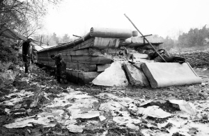 此時,石舫周圍約兩米寬的地方已經(jīng)被草垛圍擋,約60厘米寬的草垛上工人正在檢查施工情況,草垛內(nèi)工人們正在清淤。據(jù)現(xiàn)場施工的張師傅介紹,目前已清淤高度約1米。 “我們是大年初三時發(fā)現(xiàn)石舫一側(cè)坍塌的,約十天前,我們開始圍堵并排水、清淤!睋(jù)了解,在盛夏漲水時石舫只有約十厘米露在水面外。“從現(xiàn)在挖的高度來看起碼有1.7米左右長期浸泡在水里!睆垘煾嫡f,“另外,石頭年久失修一定會造成一定松動!