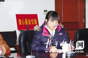 昨天,母校南京66中將小朱高中生活費(fèi)剩余的1.8萬元轉(zhuǎn)交到揚(yáng)州職大領(lǐng)導(dǎo)手中的時(shí)候,堅(jiān)強(qiáng)的小朱再也抑制不住淚水。在場(chǎng)的老師們都很驚訝,這位堅(jiān)強(qiáng)的女孩竟把“身世”隱瞞了這么長(zhǎng)時(shí)間!“高中母校已經(jīng)為我付出太多太多了,我不想再讓現(xiàn)在就讀的大學(xué)也為我操心,我不想連累太多人……”朱曉娟哽咽著說。