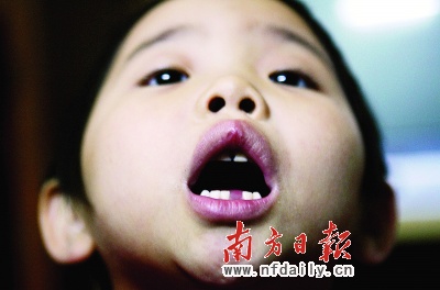 當日傍晚6時許,白英琴將珊珊從幼兒園領回家,“她沒有太多話,回到家我做了她喜歡吃的肉,可她怎么也不張口吃飯!碑敯子⑶僮屔荷簭埧,試圖喂她吃飯時,發(fā)現珊珊下排門牙不見了(如圖,楊曦攝)。