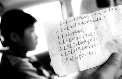 “下課瘋逗打鬧、經(jīng)常不完成作業(yè)……”記者在這張紙條上看到,甘天橋共羅列了李怡杰的七大調(diào)皮表現(xiàn)。王望霞說,這些問題孩子確實存在。但孩子犯錯,老師可批評教育,無權(quán)不讓孩子上學。