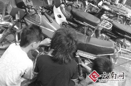 勁和斌見到記者有些不知所措,低著頭,不時搓著手上的油污。勁說回家后就再也沒有看過書本了,就算學(xué)校要他回去考畢業(yè)考,自己也沒有信心能考得過。斌說即便學(xué)校再叫回去上學(xué),自己也不想回去了,雖然修理摩托車很累。