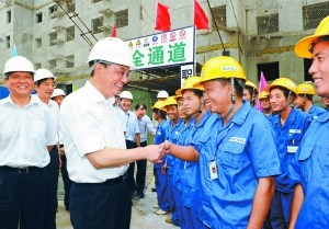 李克強(qiáng)來到正在建設(shè)中的管莊保障性住房項(xiàng)目,看望并慰問一線建筑工人、技術(shù)人員和管理人員,鼓勵(lì)他們精心施工、把好質(zhì)量關(guān),把這一重大民生工程建設(shè)好,讓群眾住得安心、舒心。遠(yuǎn)洋地產(chǎn)行政總裁李明在現(xiàn)場向李克強(qiáng)匯報(bào)了項(xiàng)目進(jìn)展情況。