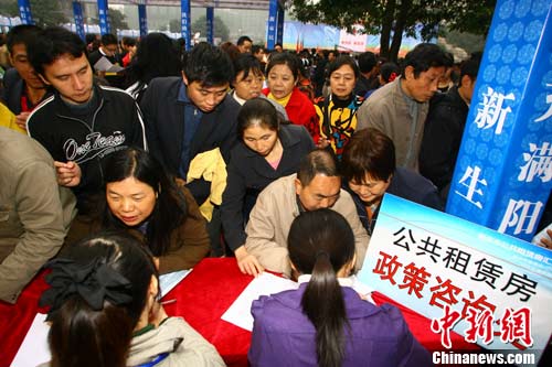 和章程福夫婦情況相仿的數(shù)百名農(nóng)民工把公租房咨詢點(diǎn)圍成里三層、外三層,小小的咨詢點(diǎn)幾乎要被擠爆。咨詢點(diǎn)工作人員介紹,重慶“民心佳園”公租房正在醞釀?wù)酵瞥,不少農(nóng)民工前來詢問其租金和申請(qǐng)流程。咨詢點(diǎn)向農(nóng)民工發(fā)放的公租房宣傳資料上稱,重慶公租房的租金初步定為市場(chǎng)租金的60%,個(gè)人收入在2000元以下的人即可申請(qǐng),申請(qǐng)者不受戶籍限制。