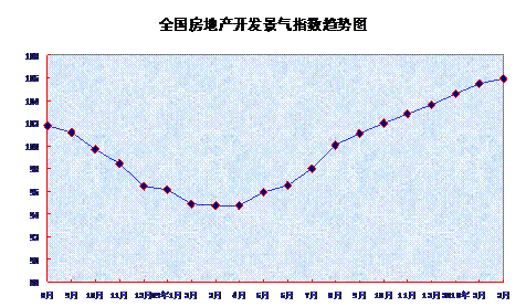中新網(wǎng)4月14日電 國(guó)家統(tǒng)計(jì)局今日發(fā)布的數(shù)據(jù)顯示,2010年3月份,全國(guó)房地產(chǎn)開(kāi)發(fā)景氣指數(shù)(簡(jiǎn)稱(chēng)“國(guó)房景氣指數(shù)”)為105.89,比2月份提高0.42點(diǎn),比去年同期提高11.15點(diǎn)。