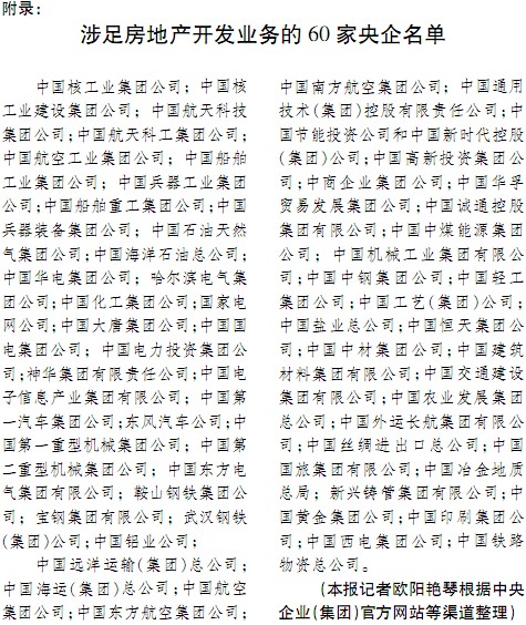 60家涉房地產(chǎn)開(kāi)發(fā)央企