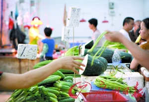 為了證實(shí)徐玲說法的真實(shí)性,記者在新街市內(nèi)的一個檔口買了兩斤菜心,單價為2元/斤,在兩三公里外的沙鳳綜合市場,記者又買了2斤半菜心,單價只為1.5元/斤。