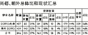 12月6日,SOHO尚都和朝外SOHO的近百名業(yè)主在SOHO尚都3層咖啡廳內(nèi)召開了業(yè)主大會(huì),記者了解后得知,這近百名業(yè)主各自擁有SOHO尚都和朝外SOHO的一間到幾間商鋪不等,基本在2006-2007年間收房。據(jù)業(yè)主商小姐介紹,業(yè)主們收房三個(gè)月之后開始出現(xiàn)問題,因?yàn)樯鈶K淡,租戶開始鬧事,之后新的招商招不上來,出租情況一直很差,目前朝外SOHO基本一半商鋪空置,出租情況最好的SOHO尚都西塔也有35%左右的商鋪空置。