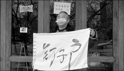 陸先生表示,一天凌晨幾名“黑衣大漢”試圖拆除餐館門口的地磚,被他發(fā)現勸阻了。隨后,他用石塊在餐館門口圈出界限,提醒對方5米之內請勿靠近,同時他還在餐館門上貼出大字報,標明已被停水停電幾天,提醒拆遷方注意自己的行為給商戶造成的損失。根據招聘要求,陸先生需要24小時駐餐館內。由于停水停電無暖氣,他只能去附近居民家借水,并用爐子燒蜂窩煤取暖。