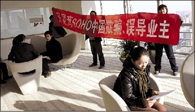 潘石屹旗下SOHO中國的新樓盤嘉盛中心剛開盤就遇尷尬。前天和昨天,自稱被欺騙的20余名朝外SOHO和SOHO尚都的業(yè)主,打著橫幅到售樓處,勸人不要買潘石屹的房子。