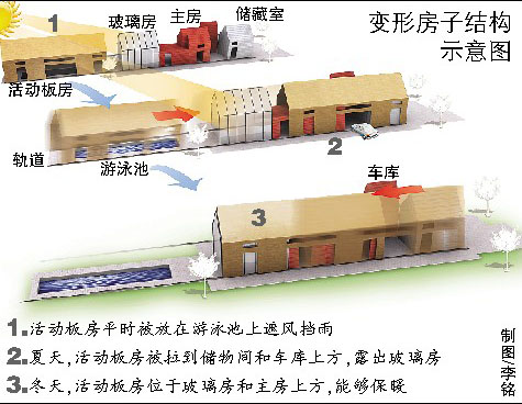 英國一男子造出了一座“變形”房,能夠滿足房主四季對采光、保暖的不同要求。